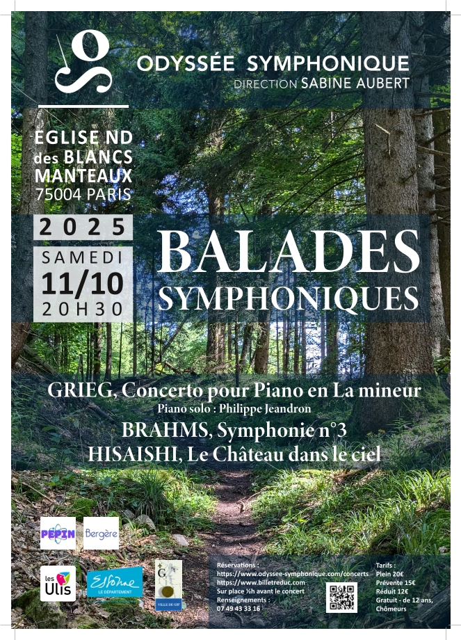 Samedi 11 octobre 2025 à 20h30, concert « Balades symphoniques » par l’orchestre Odyssée Symphonique.